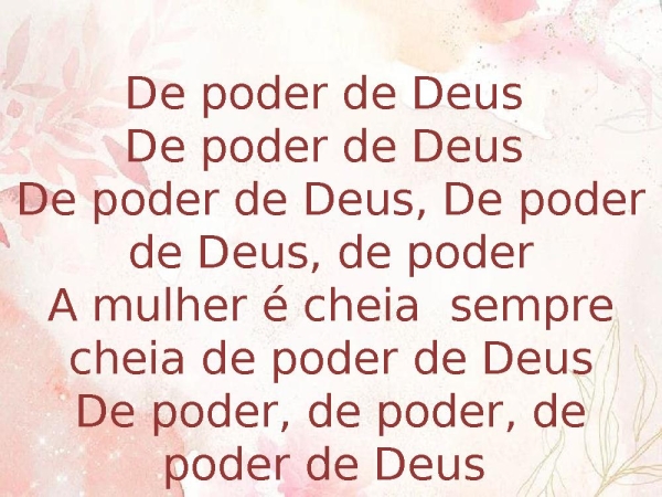 - De poder de Deus De poder de Deus De poder de Deus, De poder de Deus, de poderA mulher é cheia sempre cheia de poder de DeusDe poder, de poder, de poder de Deus