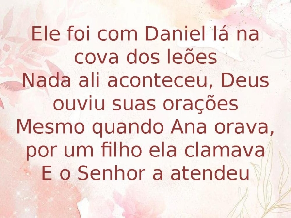 - Ele foi com Daniel lá na cova dos leõesNada ali aconteceu, Deus ouviu suas oraçõesMesmo quando Ana orava, por um filho ela clamavaE o Senhor a atendeu
