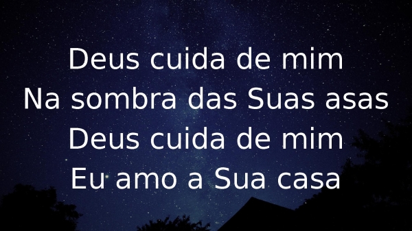 - Deus cuida de mimNa sombra das Suas asasDeus cuida de mimEu amo a Sua casa