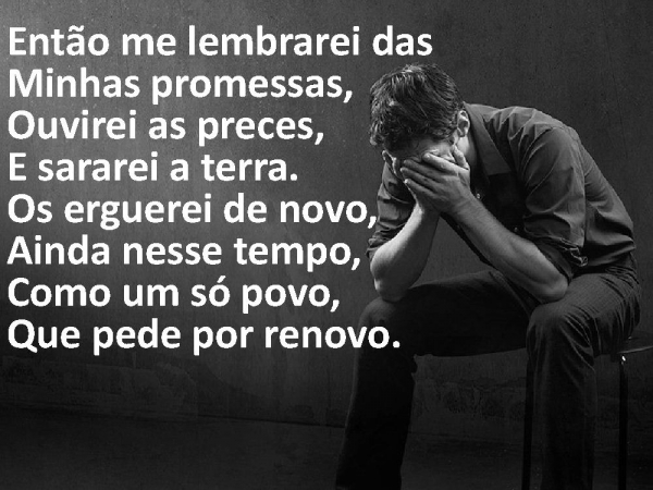 - Então me lembrarei das Minhas promessas,Ouvirei as preces, E sararei a terra.Os erguerei de novo, Ainda nesse tempo, Como um só povo, Que pede por renovo.