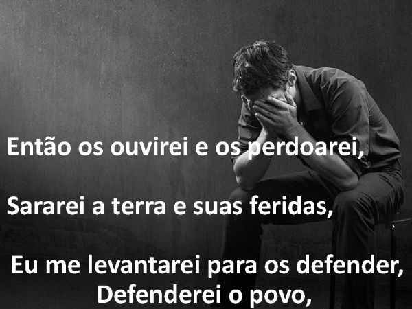 - Então os ouvirei e os perdoarei, Sararei a terra e suas feridas, Eu me levantarei para os defender,Defenderei o povo, Que leva o Meu Nome.