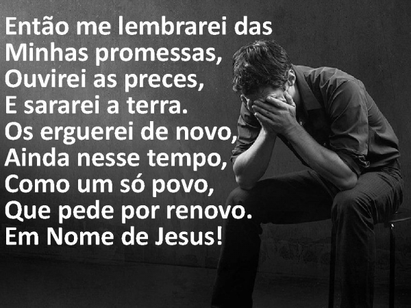 - Então me lembrarei das Minhas promessas,Ouvirei as preces, E sararei a terra.Os erguerei de novo, Ainda nesse tempo, Como um só povo, Que pede por renovo.Em Nome de Jesus!