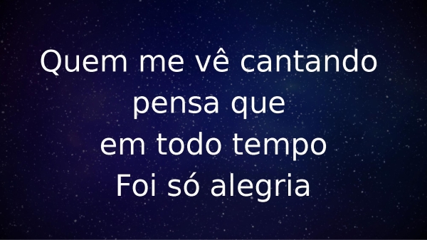 - Quem me vê cantando pensa que em todo tempoFoi só alegria