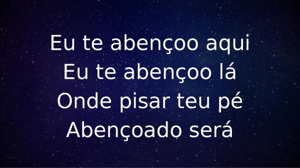 - Eu te abençoo aquiEu te abençoo láOnde pisar teu péAbençoado será