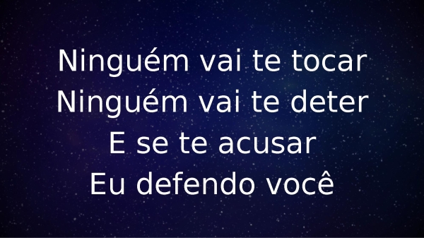 - Ninguém vai te tocarNinguém vai te deterE se te acusarEu defendo você