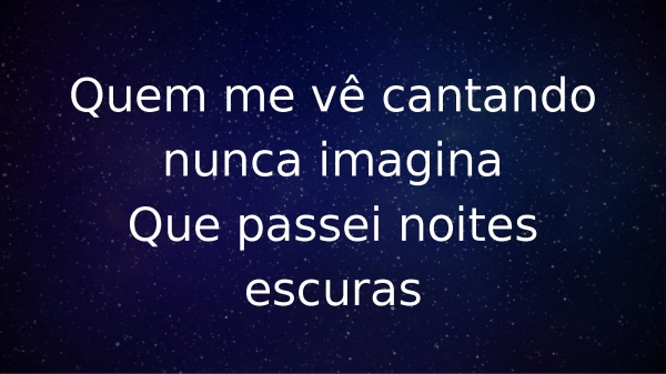 - Quem me vê cantandonunca imaginaQue passei noitesescuras