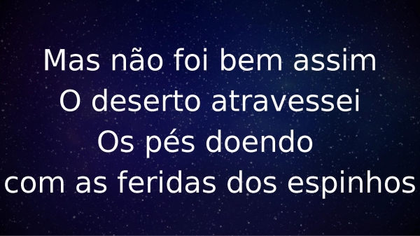 - Mas não foi bem assimO deserto atravesseiOs pés doendo com as feridas dos espinhos