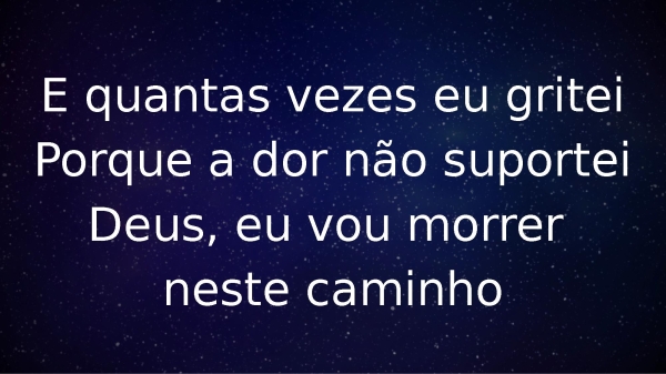 - E quantas vezes eu griteiPorque a dor não suporteiDeus, eu vou morrer neste caminho