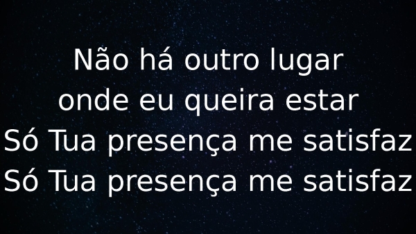 - Não há outro lugaronde eu queira estarSó Tua presença me satisfazSó Tua presença me satisfaz