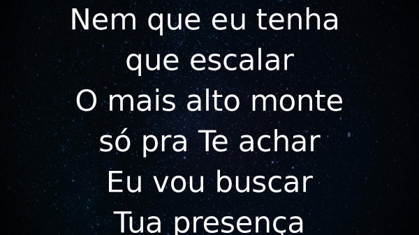 - Nem que eu tenha que escalarO mais alto montesó pra Te acharEu vou buscarTua presença