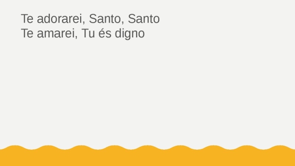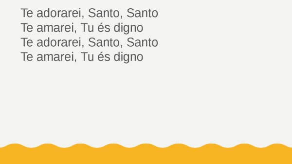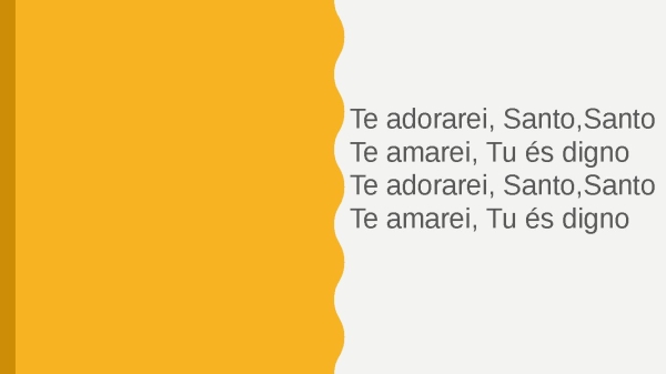 - Te adorarei, Santo, SantoTe amarei, Tu és dignoTe adorarei, Santo, SantoTe amarei, Tu és digno