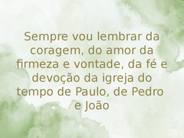 - Sempre vou lembrar da coragem, do amor da firmeza e vontade, da fé e devoção da igreja do tempo de Paulo, de Pedro e João