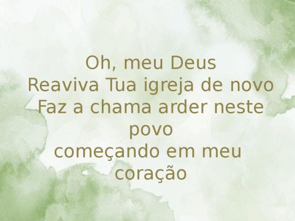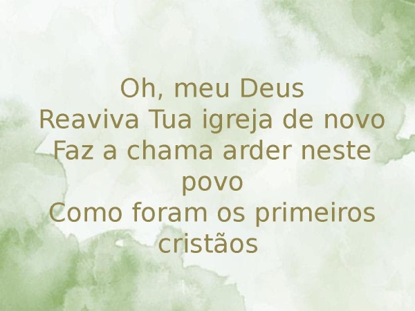- Oh, meu DeusReaviva Tua igreja de novoFaz a chama arder neste povoComo foram os primeiros cristãos