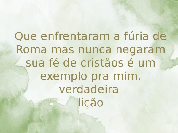 - Que enfrentaram a fúria de Roma mas nunca negaram sua fé de cristãos é um exemplo pra mim, verdadeira lição