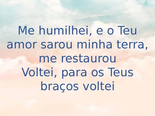 - Me humilhei, e o Teu amor sarou minha terra, me restaurouVoltei, para os Teus braços voltei