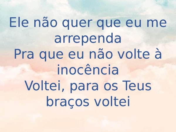 - Ele não quer que eu me arrependaPra que eu não volte à inocênciaVoltei, para os Teus braços voltei