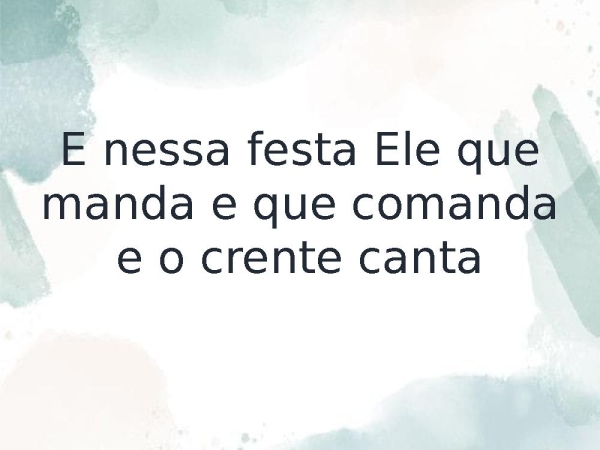 - E nessa festa Ele que manda e que comanda e o crente canta