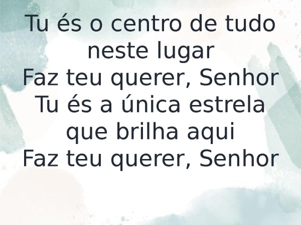 - Tu és o centro de tudo neste lugarFaz teu querer, SenhorTu és a única estrela que brilha aquiFaz teu querer, Senhor