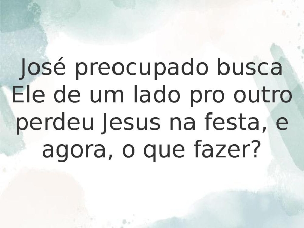 - José preocupado busca Ele de um lado pro outro perdeu Jesus na festa, e agora, o que fazer?