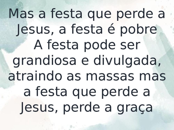 - Mas a festa que perde a Jesus, a festa é pobreA festa pode ser grandiosa e divulgada, atraindo as massas mas a festa que perde a Jesus, perde a graça