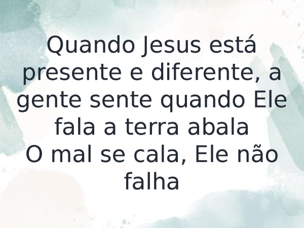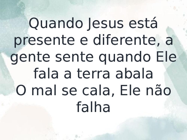 - Quando Jesus está presente e diferente, a gente sente quando Ele fala a terra abalaO mal se cala, Ele não falha