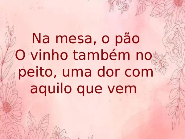 - Na mesa, o pãoO vinho também no peito, uma dor com aquilo que vem