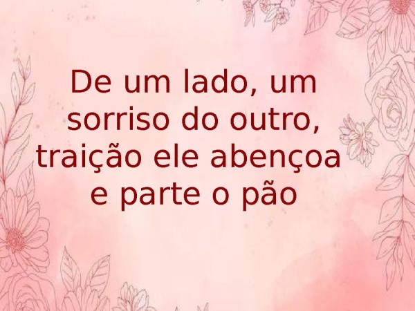 - De um lado, um sorriso do outro, traição ele abençoa e parte o pão