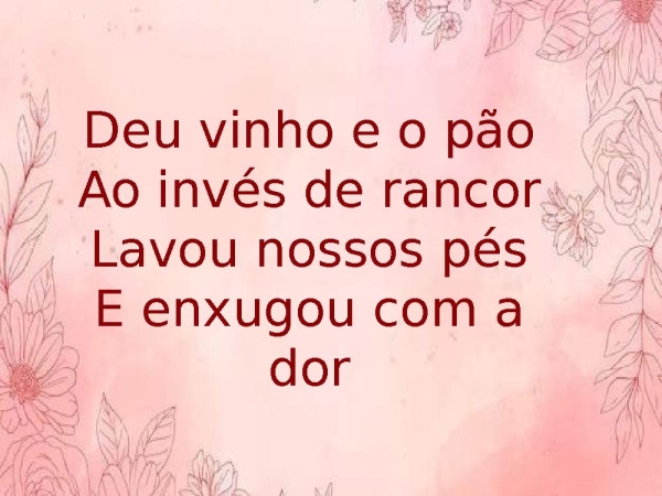 - Deu vinho e o pãoAo invés de rancorLavou nossos pésE enxugou com a dor