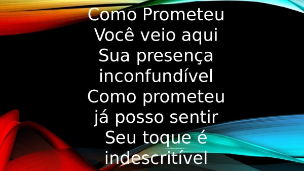 - Como Prometeu Você veio aquiSua presença inconfundívelComo prometeu já posso sentirSeu toque é indescritível