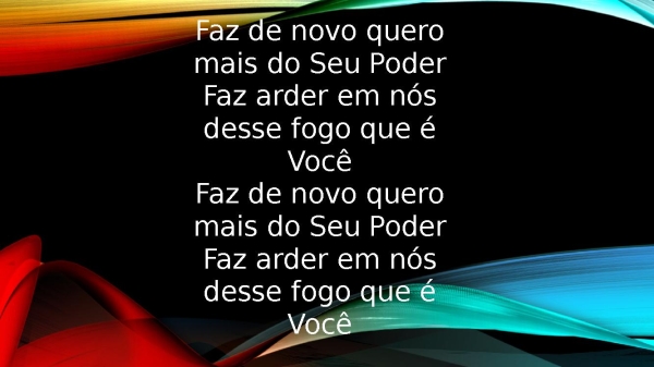 - Faz de novo quero mais do Seu PoderFaz arder em nós desse fogo que é VocêFaz de novo quero mais do Seu PoderFaz arder em nós desse fogo que é Você