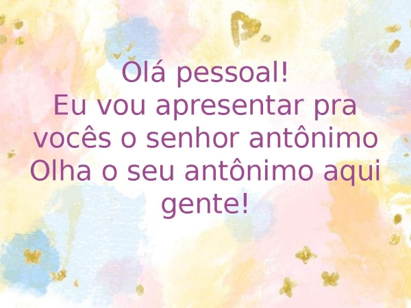 - Olá pessoal!Eu vou apresentar pra vocês o senhor antônimoOlha o seu antônimo aqui gente!