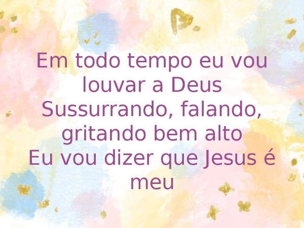 - Em todo tempo eu vou louvar a DeusSussurrando, falando, gritando bem altoEu vou dizer que Jesus é meu