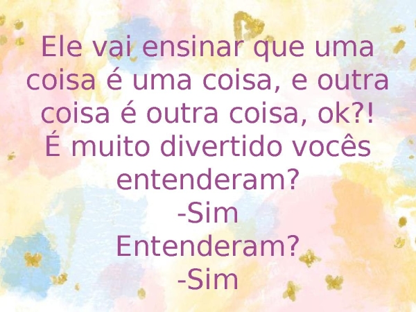 - Ele vai ensinar que uma coisa é uma coisa, e outra coisa é outra coisa, ok?!É muito divertido vocês entenderam?-SimEntenderam?-Sim