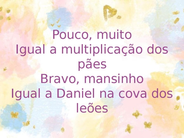 - Pouco, muitoIgual a multiplicação dos pãesBravo, mansinhoIgual a Daniel na cova dos leões