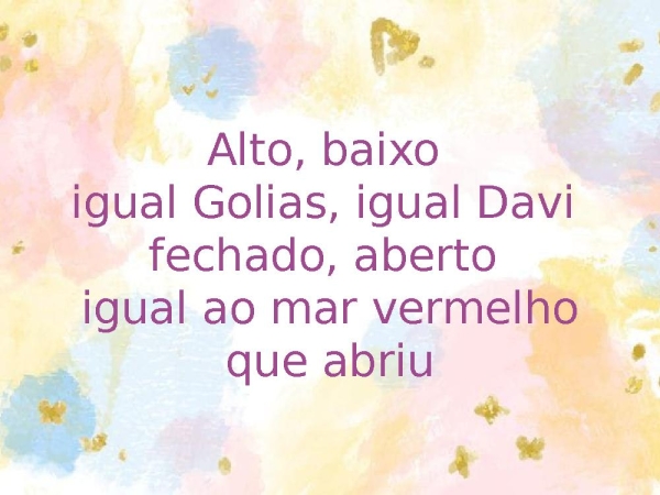 - Alto, baixo igual Golias, igual Davi fechado, aberto igual ao mar vermelho que abriu
