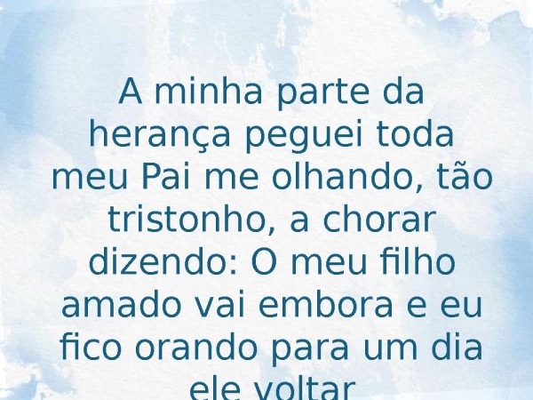 - A minha parte da herança peguei toda meu Pai me olhando, tão tristonho, a chorar dizendo: O meu filho amado vai embora e eu fico orando para um dia ele voltar