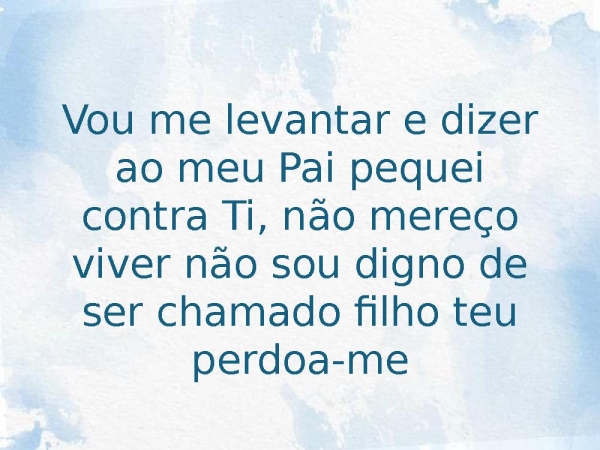 - Vou me levantar e dizer ao meu Pai pequei contra Ti, não mereço viver não sou digno de ser chamado filho teu perdoa-me