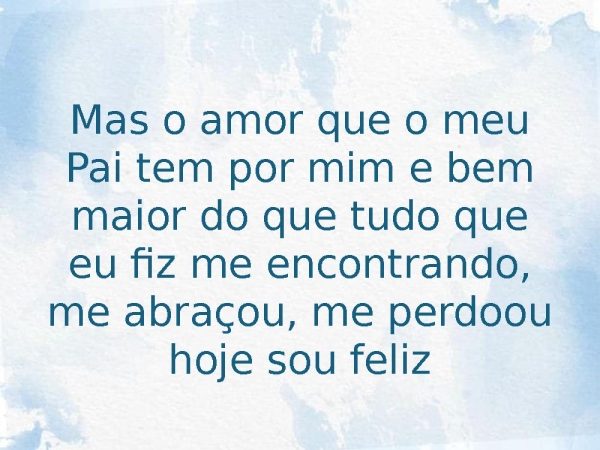 - Mas o amor que o meu Pai tem por mim e bem maior do que tudo que eu fiz me encontrando, me abraçou, me perdoou hoje sou feliz