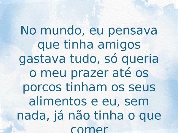 - No mundo, eu pensava que tinha amigos gastava tudo, só queria o meu prazer até os porcos tinham os seus alimentos e eu, sem nada, já não tinha o que comer