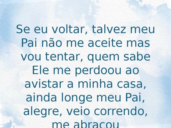 - Se eu voltar, talvez meu Pai não me aceite mas vou tentar, quem sabe Ele me perdoou ao avistar a minha casa, ainda longe meu Pai, alegre, veio correndo, me abraçou