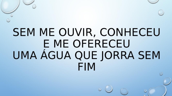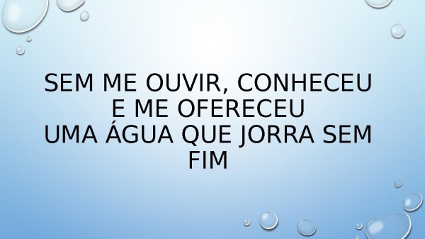 - Sem me ouvir, conheceuE me ofereceuUma água que jorra sem fim