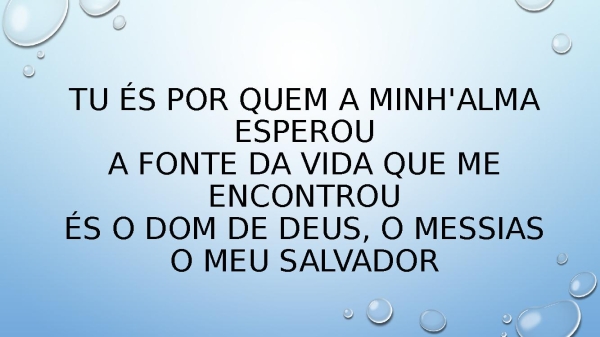 - Tu és por quem a minh'alma esperouA fonte da vida que me encontrouÉs o dom de Deus, o MessiasO meu salvador