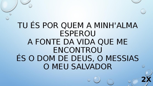 - Tu és por quem a minh'alma esperouA fonte da vida que me encontrouÉs o dom de Deus, o MessiasO meu salvador3X