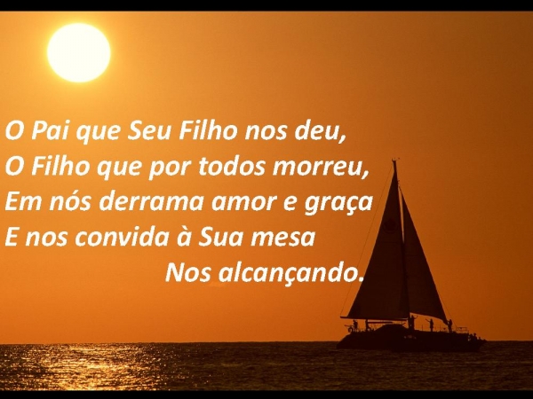 - O Pai que Seu Filho nos deu, O Filho que por todos morreu, Em nós derrama amor e graça E nos convida à Sua mesa Nos alcançando.
