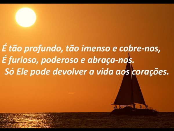 - É tão profundo, tão imenso e cobre-nos, É furioso, poderoso e abraça-nos. Só Ele pode devolver a vida aos corações.