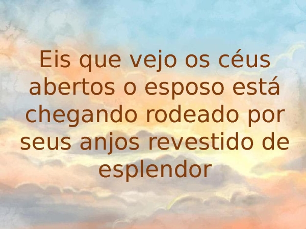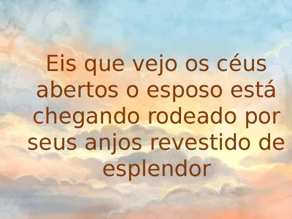 - Eis que vejo os céus abertos o esposo está chegando rodeado por seus anjos revestido de esplendor