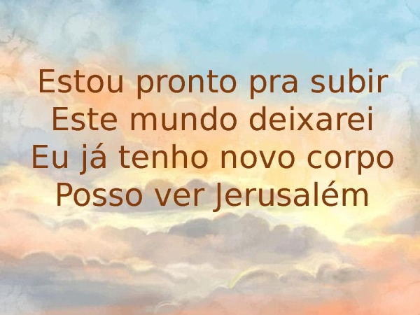 - Estou pronto pra subirEste mundo deixareiEu já tenho novo corpoPosso ver Jerusalém