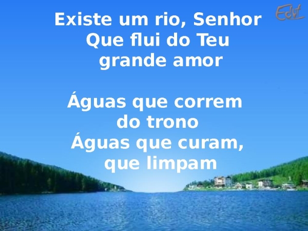 - Existe um rio, SenhorQue flui do Teu grande amorÁguas que correm do tronoÁguas que curam, que limpam