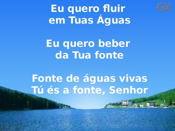 - Eu quero fluir em Tuas ÁguasEu quero beber da Tua fonteFonte de águas vivasTú és a fonte, Senhor