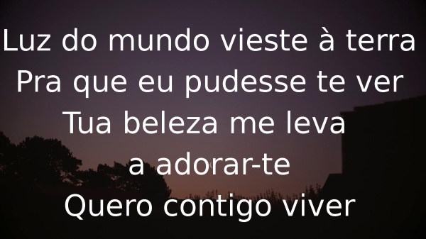 - Luz do mundo vieste à terraPra que eu pudesse te verTua beleza me leva a adorar-teQuero contigo viver